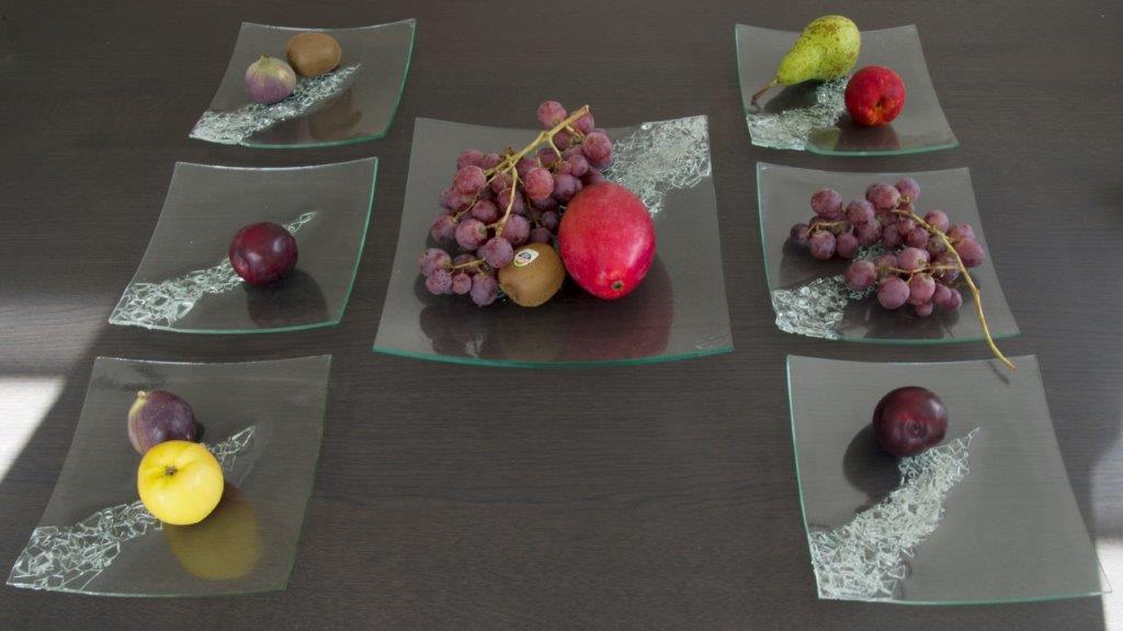 "Fruit-stel" Fruit schaal / en 6 bordjes, fruit-set bowl / and 6 plates, Obstschale / und 6 Teller. Formaat; 30 x 30 cm / 20 x 20 cm Price: € 585,-