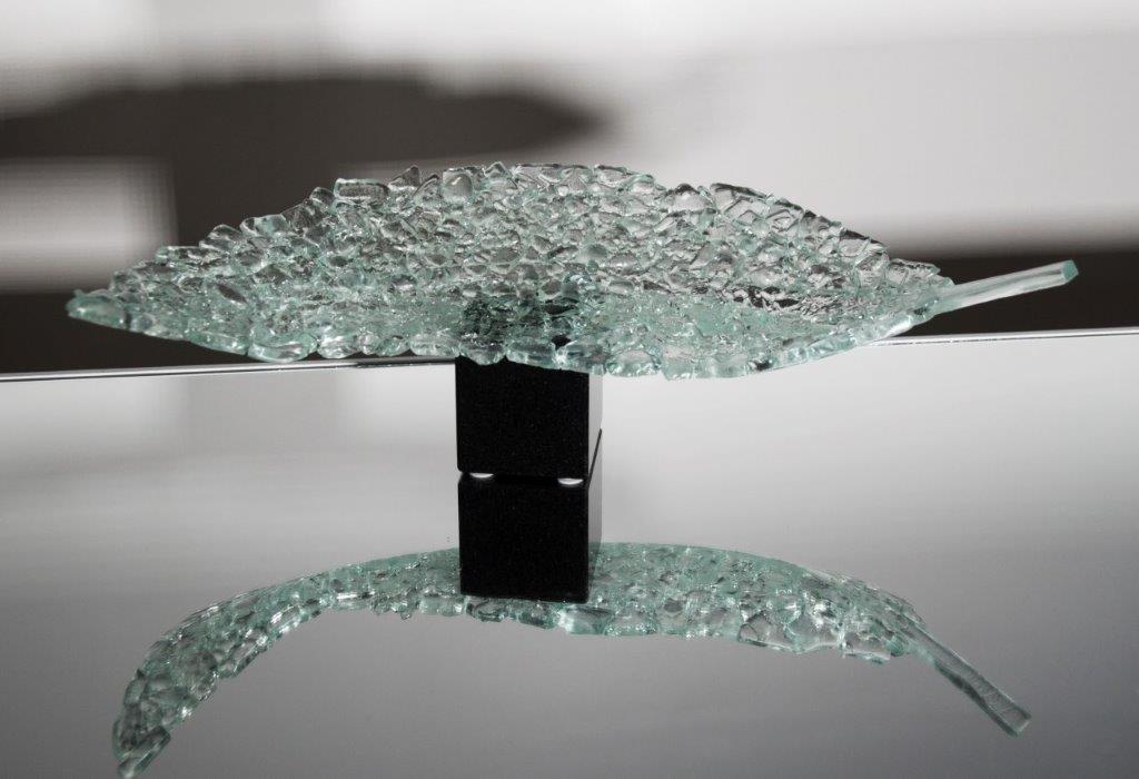 "Leaf ice crush" Glas sculptuur Glass sculpture Skulptur aus Glas. Formaat 9 x 12 x 35 cm Price: € 360,-