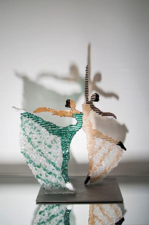 "Ballerina" Glas sculptuur Glass sculpture Skulptur aus Glas. Format: 15 x 40 & 22 x 36 cm. Price: € 770,-