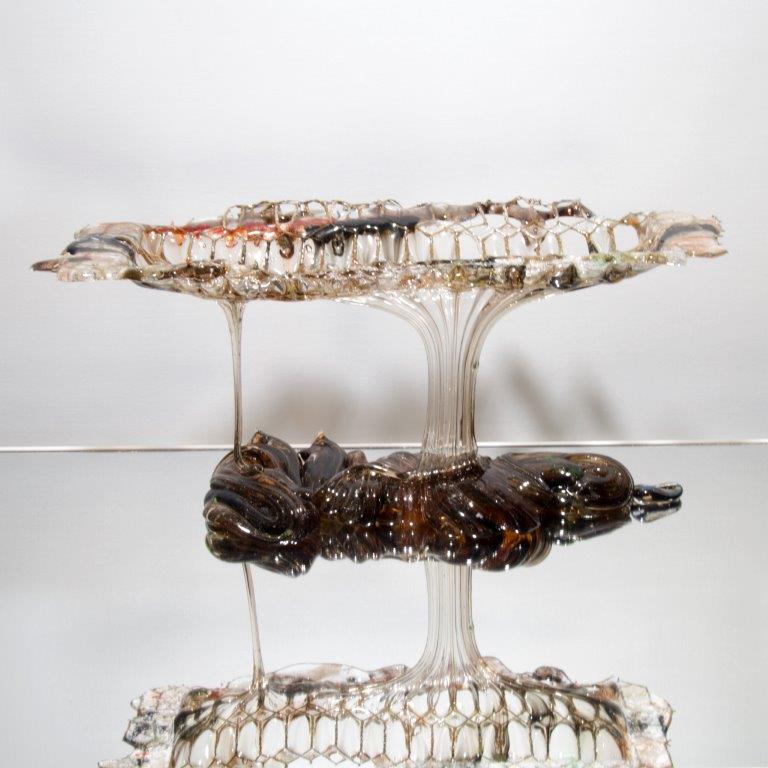 "Colour Bridge" Glas sculptuur Glassdrip Reunion sculpture van glas Skulptur aus Glas. Formaat: 10 x 18 x 32 cm Price: € 395,-