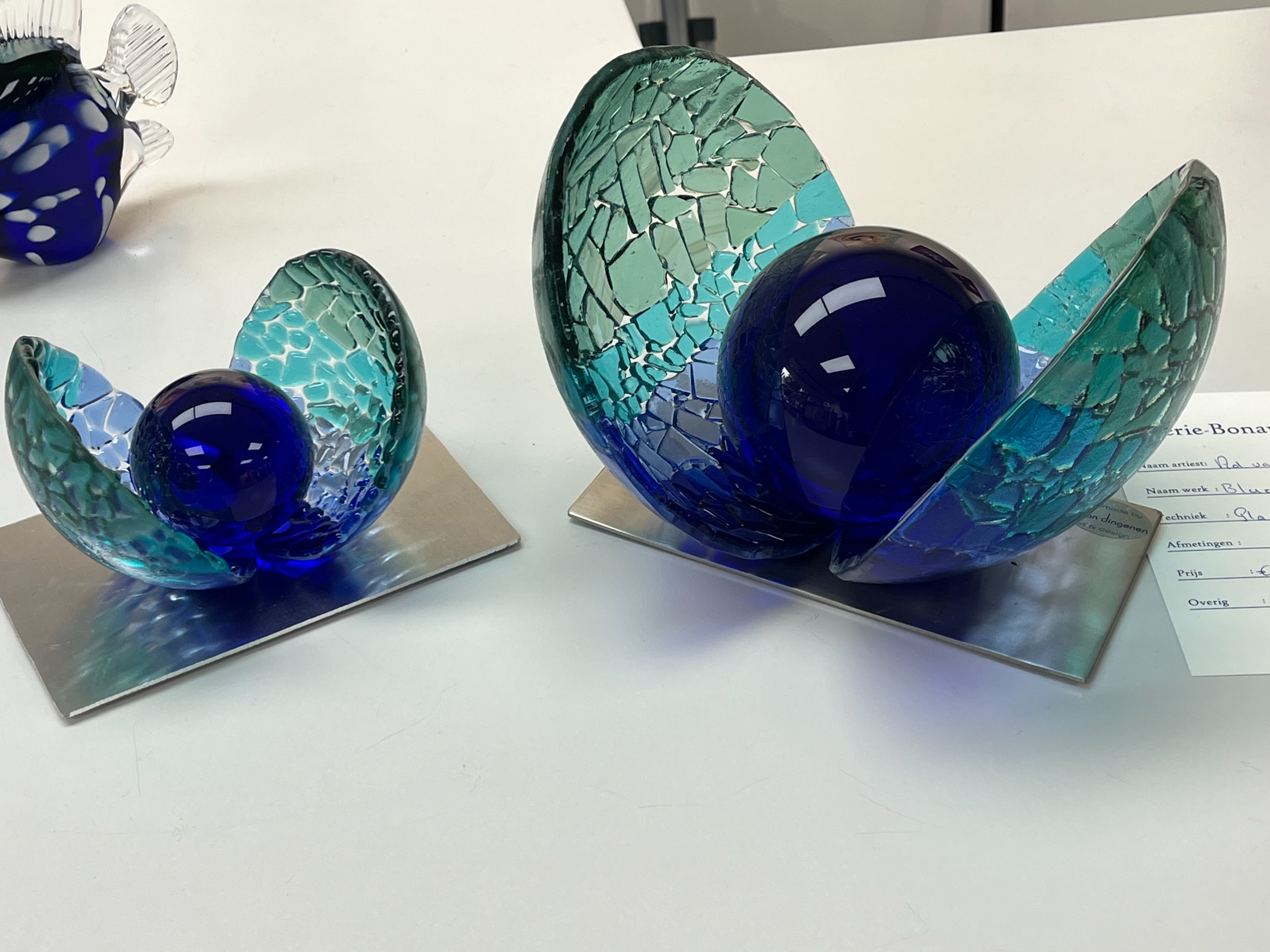 "Blue Pearls" Glas sculptuur Glass sculpture Skulptur aus Glas. Formaat: 10 x 11 x 14 cm / 16 x 18 x 20 cm Price: small € 385,- big € 630,- together 990.-
