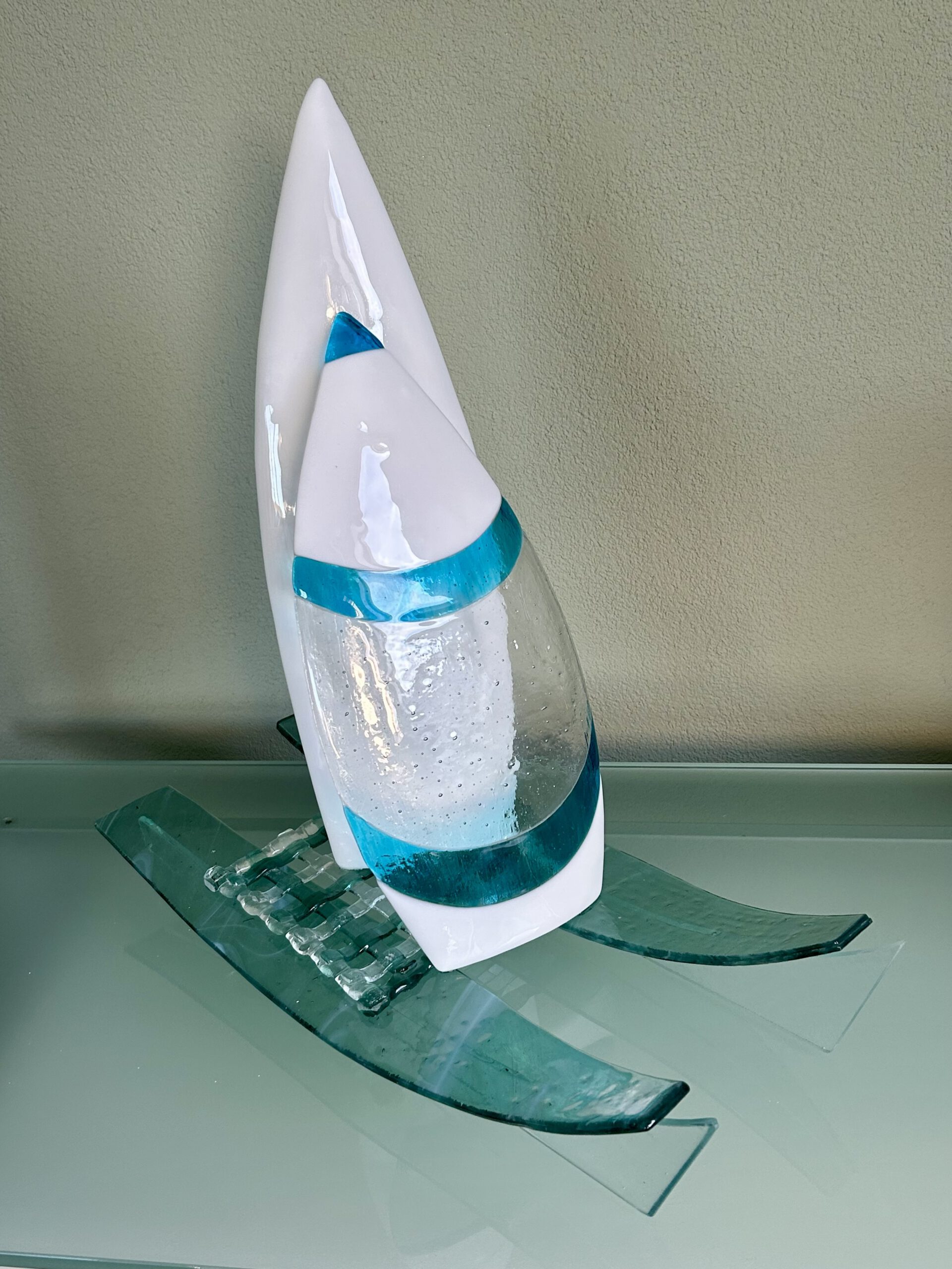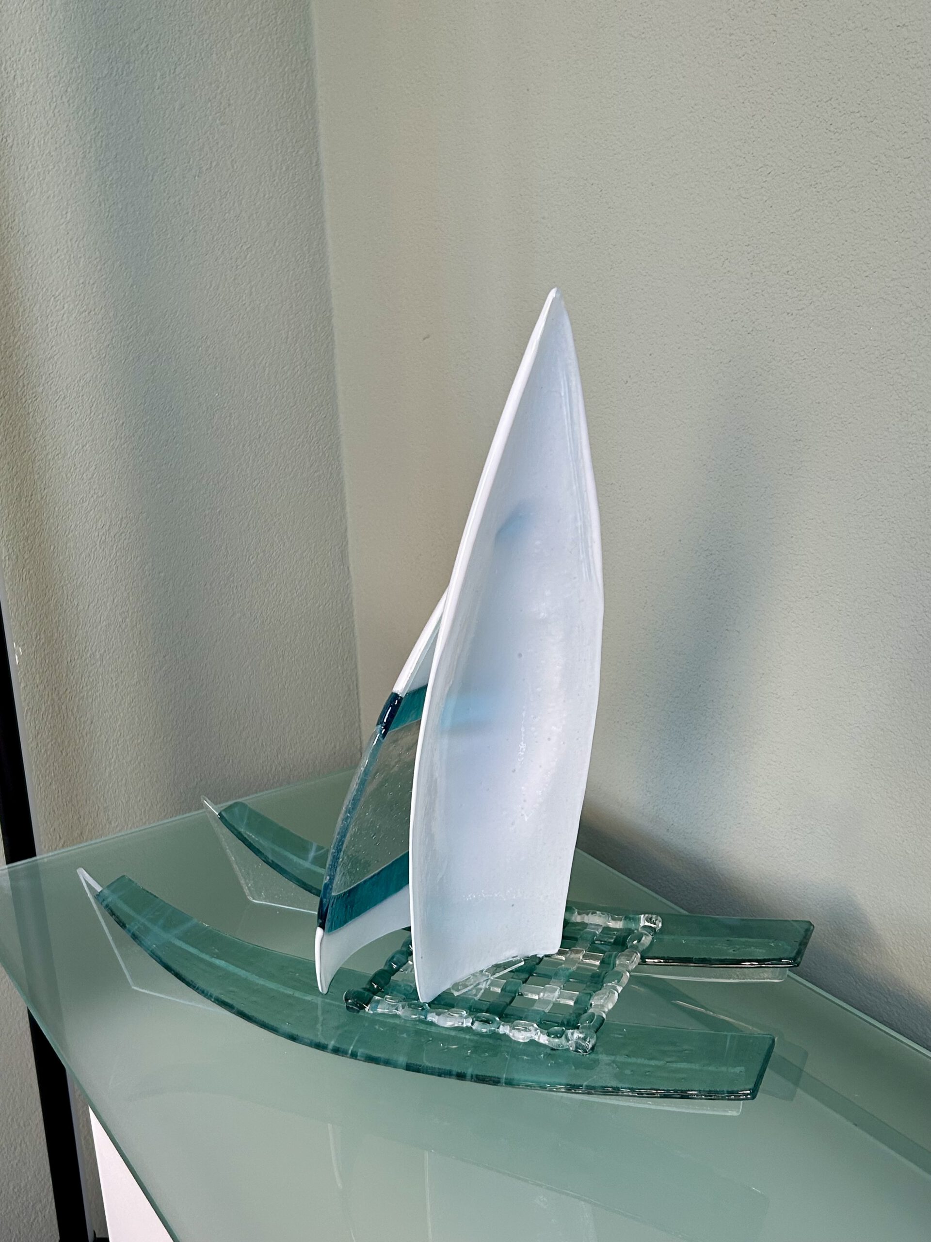 "Sailboat" Glas sculptuur Glass sculpture Skulptur aus Glas. Formaat: 17 x 50 x 55 cm Price: € 2970,-